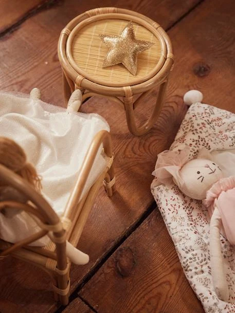 Pour compléter le mobilier des poupées, voici un adorable duo chaise et table en rotin très tendance. Des accessoires de jeu qui amènent un charme rétro à la déco de chambre !