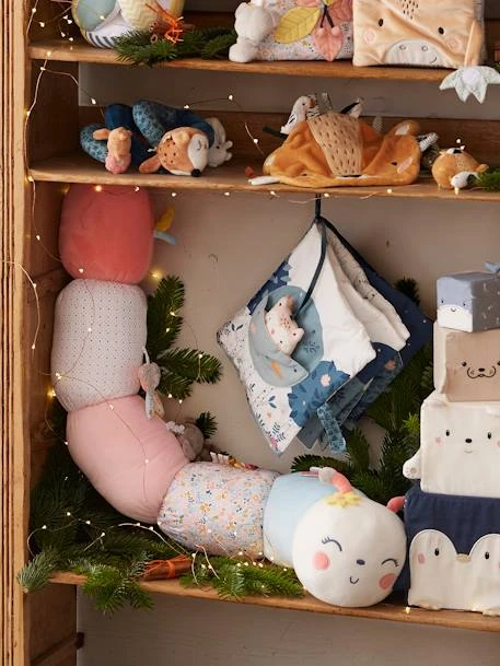 Un adorable jouet d’éveil en forme de chenille et composé de 6 coussins remplis de surprises ! Anneau de dentition, jouet vibrant, miroir, rubans… bébé sera émerveillé devant tant de chouettes activités !