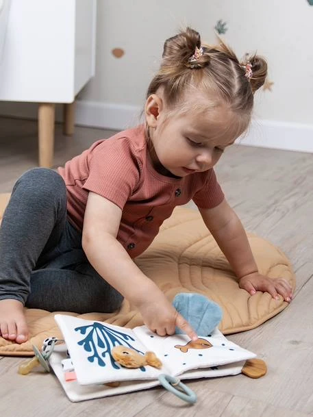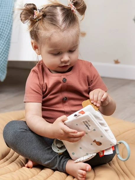 Le Livre d’Éveil Sea Friends plonge bébé dans un univers sous-marin plein d’activités. Des textures, des reliefs, des couleurs mais aussi un anneau de dentition et des amis ludiques cachés sous le coquillage vont stimuler les sens des tout-petits. Muni d’une attache velcro, ce livre pourra servir d’attache-tétine, le lien pourra également servir à attacher le livre à un parc ou à la poussette afin de divertir bébé en toutes circonstances.