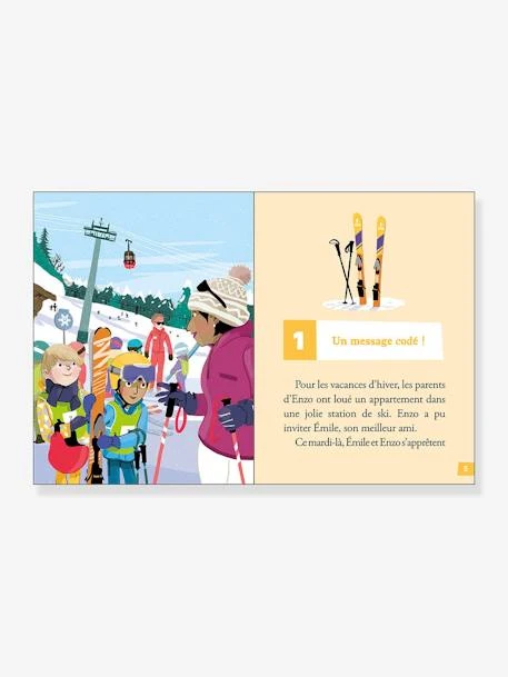 Enquête à la montagne avec Enzo et Max, les apprentis détectives !Enzo est en vacances avec son ami Emile. Au programme : cours de ski et patinoire ! Mais les deux amis reçoivent bientôt des messages codés. Qui les leur envoie ?