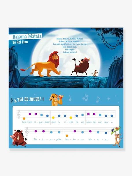 Un livre tout carton pour s’éveiller à la musique en apprenant à jouer 14 chansons Disney. L’enfant pourra apprendre à jouer ses chansons préférées à l’aide du clavier intégré avec une représentation en couleurs des notes, dans le livre et sur les touches du piano.